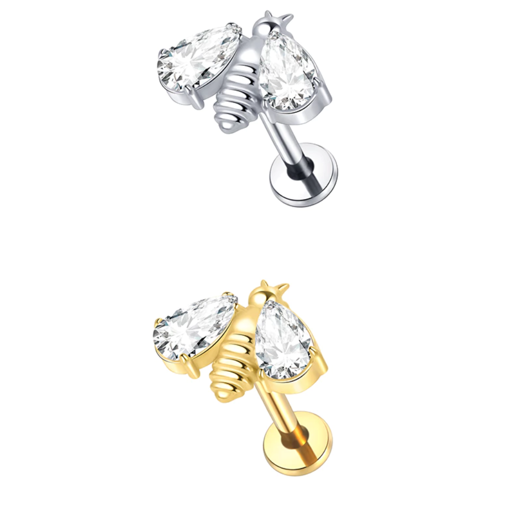 Brilhe com a doçura e sofisticação do Piercing Abelha com Zircônias em Titânio!