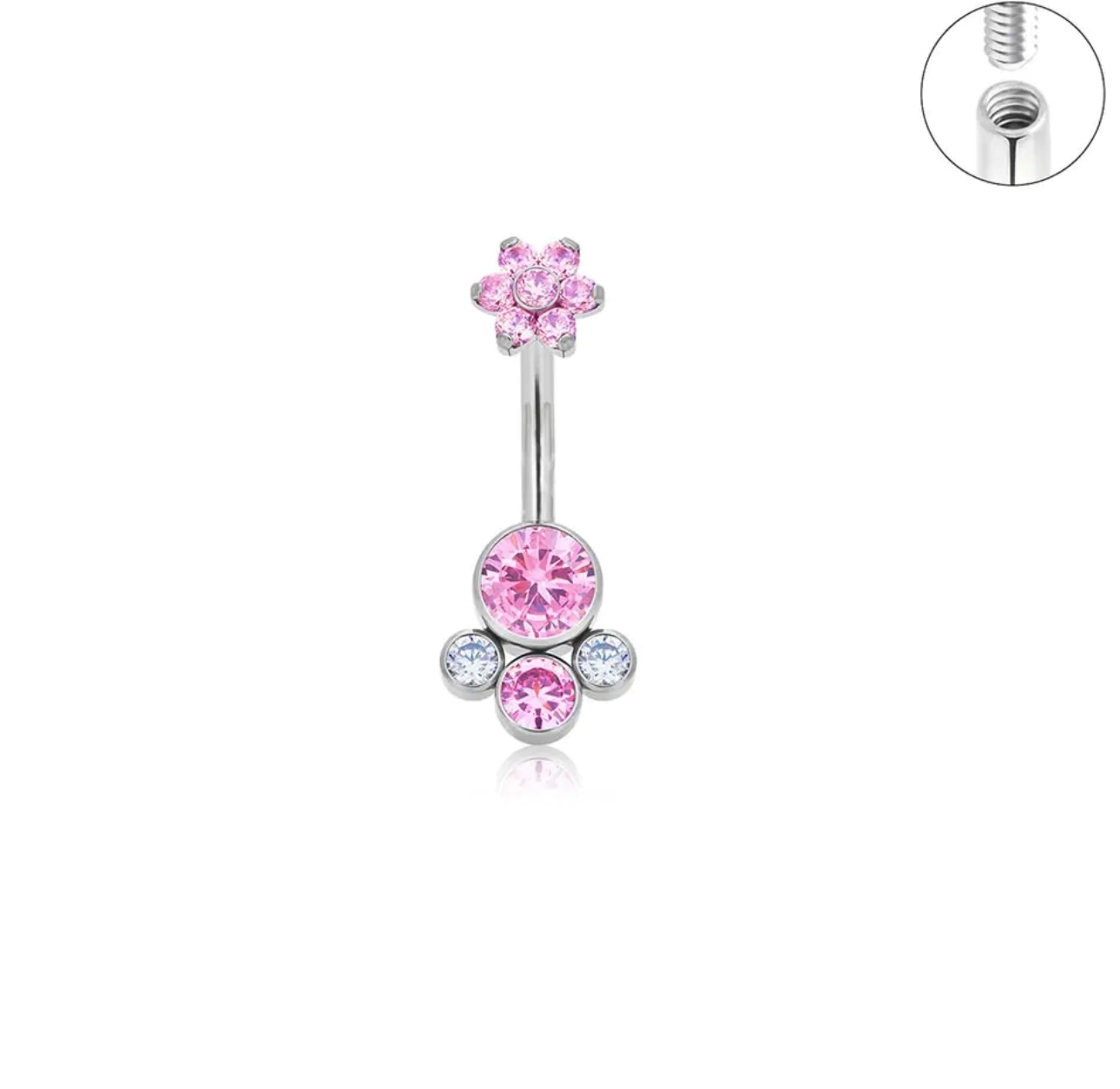 Seu design refinado, com uma zircônia cravejada de alto brilho, adiciona um toque de sofisticação à perfuração do umbigo, enquanto a tecnologia PVD de metal garante uma coloração resistente, que não desbota nem descasca com o tempo.